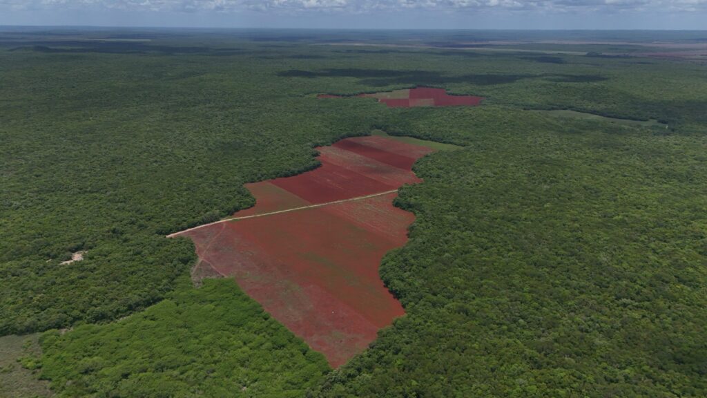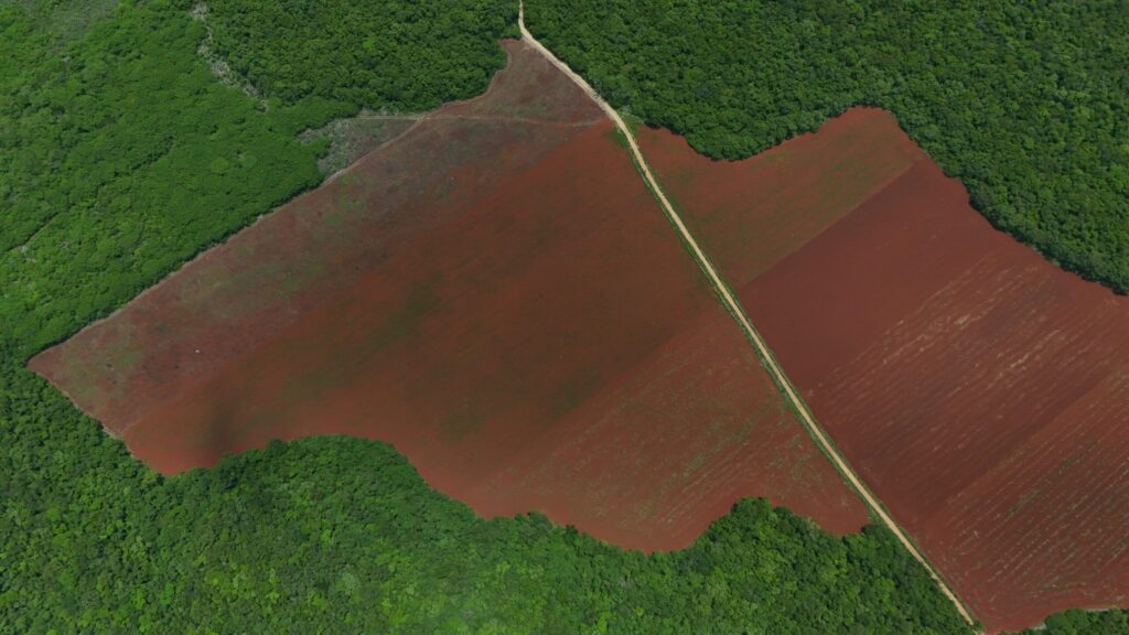 Este territorio se encuentra entre dos áreas de conservación: la Reserva Estatal Biocultural del Puuc y el Área de Protección de Flora y Fauna de Bala’an K’aax, las cuales, según estimaciones propias, suman alrededor de 9 mil hectáreas arrasadas a partir de la expansión de los campos de cultivo. Estos terrenos han sido desmontados mediante el uso de maquinaria pesada y la quema sistemática de la selva, siguiendo un patrón implementado décadas atrás por los menonitas en los estados de Quintana Roo y Campeche.